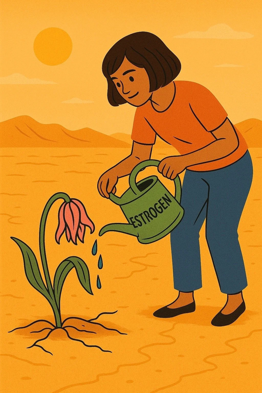 Let’s talk dryness down there. Vaginal atrophy, or genitourinary syndrome of menopause (GSM), happens when declining estrogen levels lead to changes in the vaginal and urinary tissues. Think of estrogen like nutrients for those tissues—when levels drop, it’s like a garden not getting watered. The skin might even become thinner, less elastic, and less able to produce natural moisture. This can make the skin itchy, irritated, and dry, making things like sex, pelvic exams, or even sitting too long uncomfortable. The pH level shifts too, allowing fewer “good” bacteria (like lactobacilli) and more irritation-causing microbes to move in, sometimes leading to infections or recurrent BV-like symptoms.